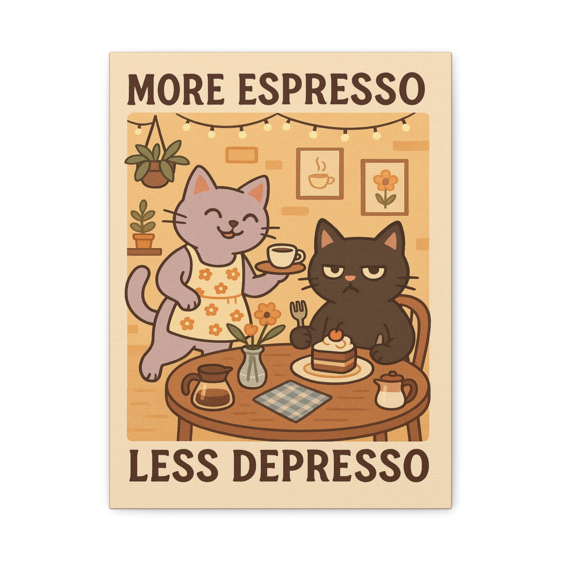 More Espresso, Less Depresso – Whimsical Café Cats Canvas Wall Art